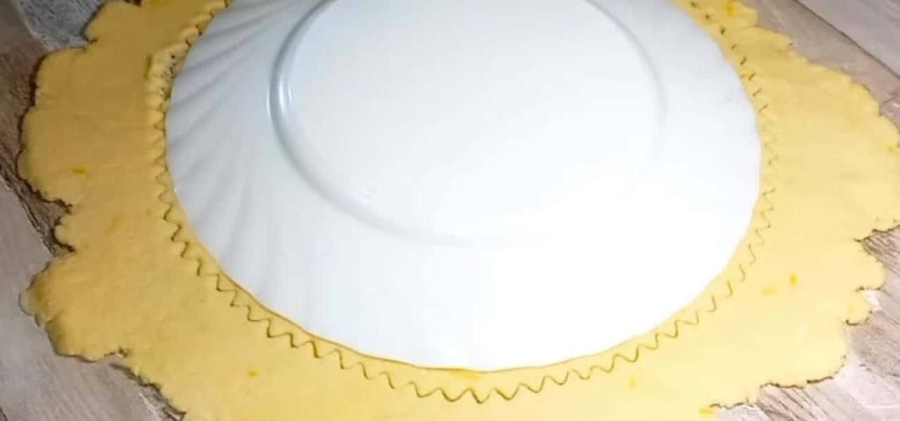 Тісто розкачуємо та тарілкою вирізаємо коло.