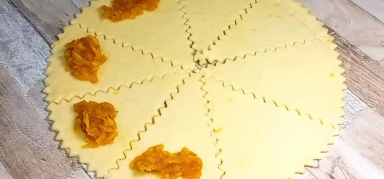 Коло нарізаємо на трикутники та викладаємо начинку.