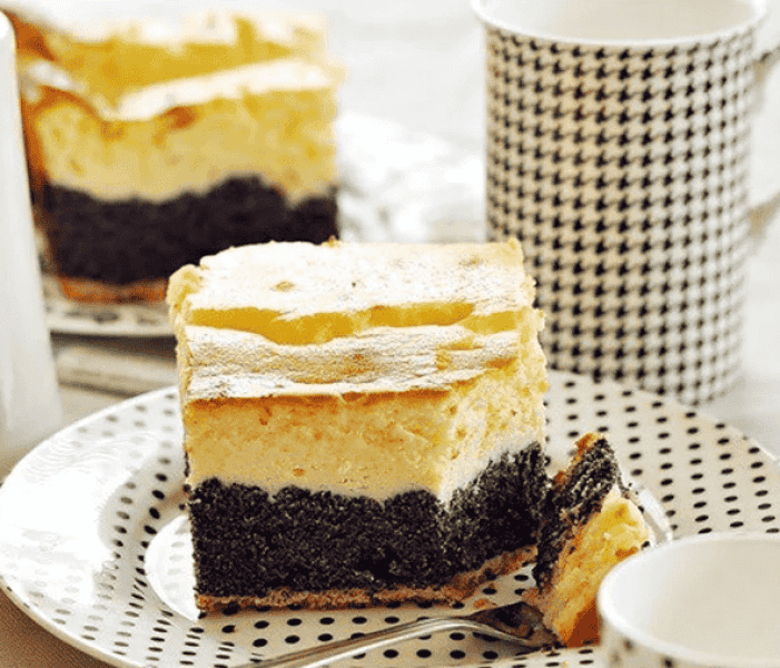 - На деко викласти макову масу, а потім сирну. Вирівняти і поставити в розігріту духовку. Випікати при 180*C на режимі «Вгору і вниз» близько 60 хвилин. Я пекла на нижньому рівні духовки.