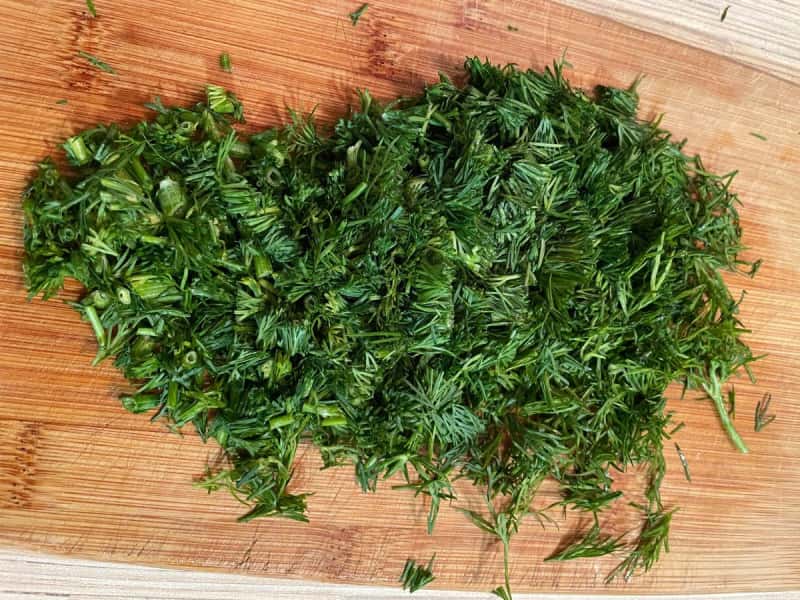 Крок 3. Кріп також добре промиваємо під проточною холодною водою, потім обсушуємо його паперовими рушниками, і дрібно нарізаємо.