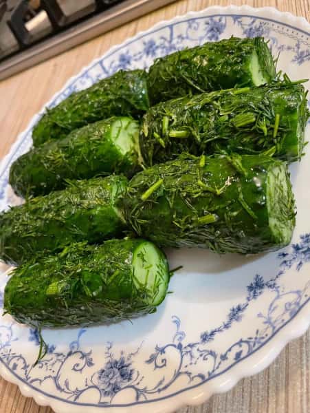 Готові малосольні огірки дістаньте з пакета, укладіть на тарілку і подайте на стіл. Смачного!