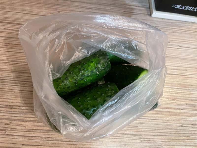 Крок 2. Складаємо огірки в щільний, чистий, поліетиленовий пакет, попередньо переконавшись, що в ньому немає дірок.