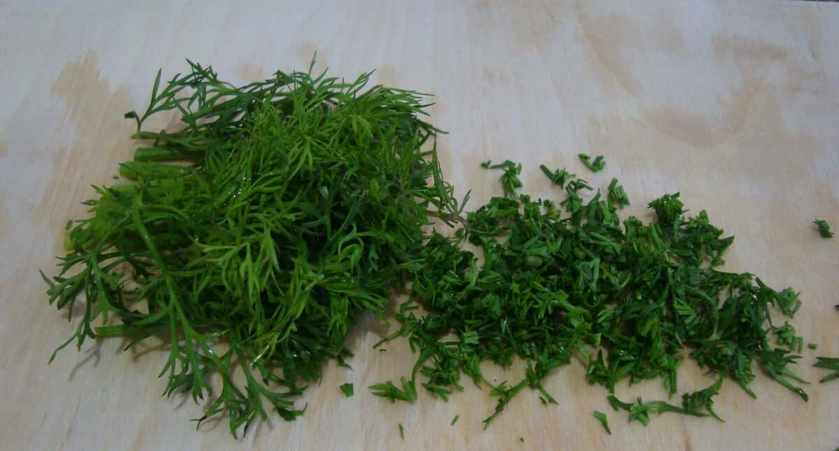 Цибуля промаринувалася і дала сік зливаю рідину і додаю олію і кріп. Все перемішую.