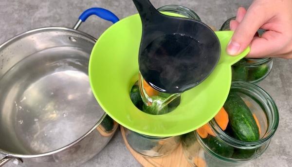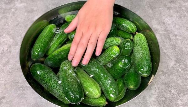 1. Огірки заливаємо холодною водою на 1 годину, потім зливаємо воду і заливаємо ще раз і залишаємо на 2-3 години.