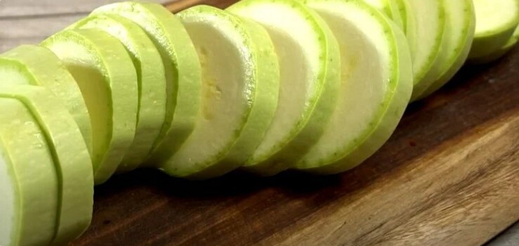 - Кабачок поріжемо на кільця.