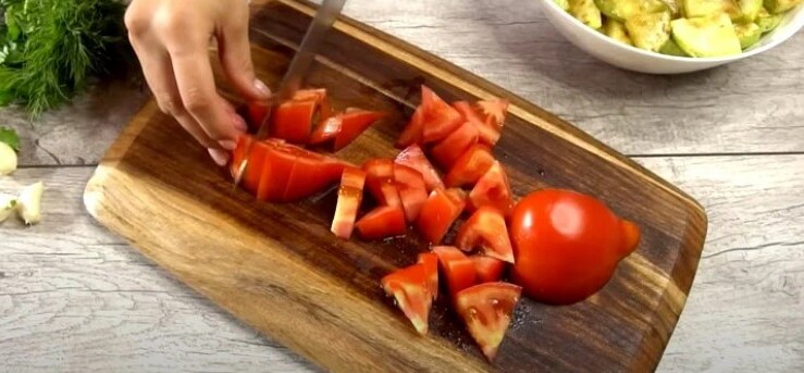 - Поріжемо 2 свіжі помідори.