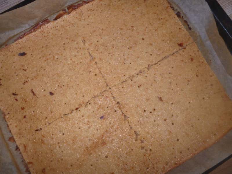 Гарячий корж погано відділяється від пергаменту, але трохи остиг, відходить легко.