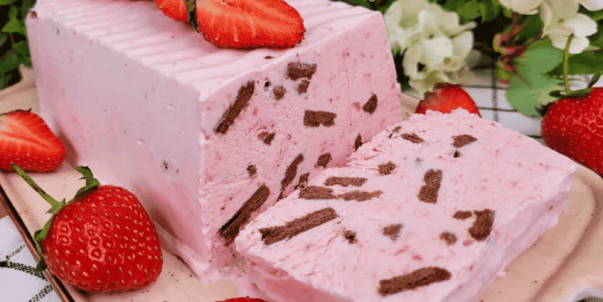 8. Виймаємо з морозилки і нехай постоїть за кімнатної температури деякий час, щоб стало м’якше. Я ріжу морозиво прямокутними шматочками, як кекс.