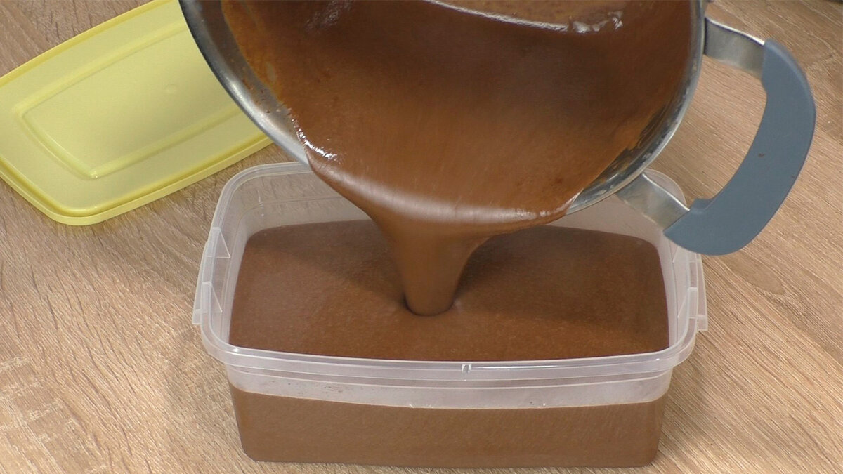 Все готово. Залишилося перелити шоколадний крем в контейнер, закрити кришкою і дати охолонути. Як охолоне перемішуємо, закриваємо кришкою і прибираємо в морозилку на 3-6 годин.