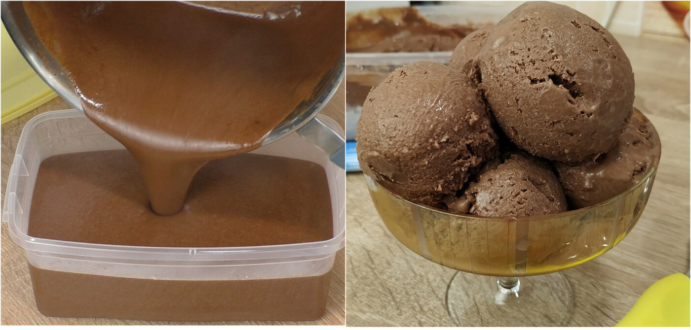 Щоб легше було формувати кульки після заморозки потримаєте морозиво при кімнатній температури 10-20 хвилин. Шоколадне морозиво виходить ніжним, смачним з насиченим шоколадним смаком.