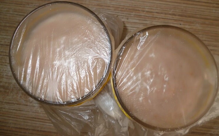 - Затягуємо кружки плівкою. Можна просто відрізати від поліетиленового мішечка два шматки.