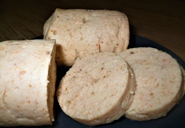 Але можу з упевненістю заявити, що виходить ковбаска дуже смачною: соковитою, запашною. За смаком та запахом нагадує хорошу шинку, за структурою – варену ковбасу. Ковбаска чудово тримає форму, легко нарізається. Коли син був маленьким, я робила таку ковбасу йому для бутербродів.