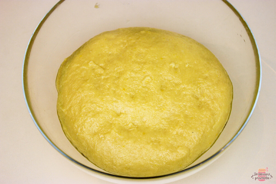 Тісто і миску змастити невеликою кількістю олією, накрити плівкою і залишити підніматися в теплому місці на 1-1,5 години. Тісто повинне збільшитися в обсязі в 2-3 рази.