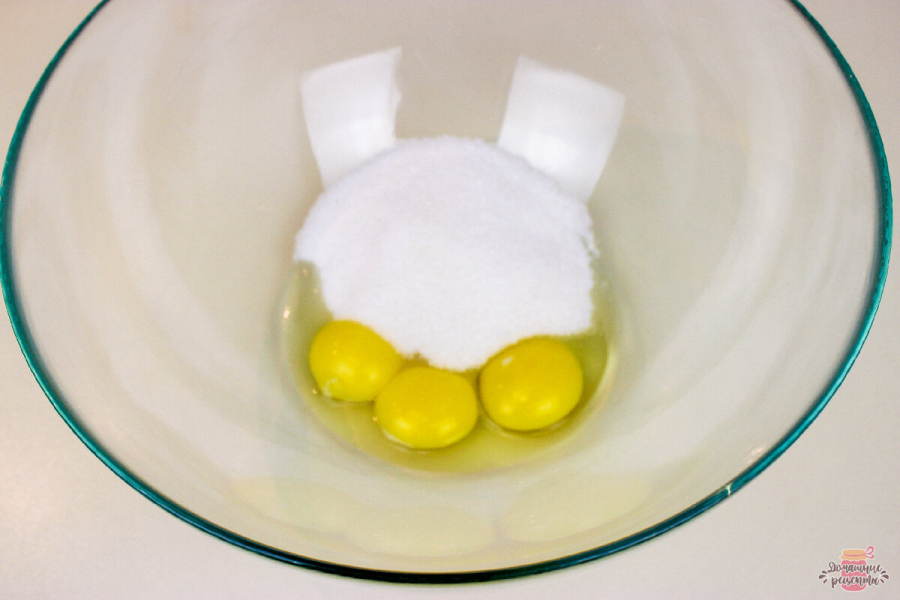 Усі інгредієнти мають бути кімнатної температури. У глибоку миску розбити яйце, додати жовтки та цукор. Збити вінчиком чи міксером до пишної світлої маси.