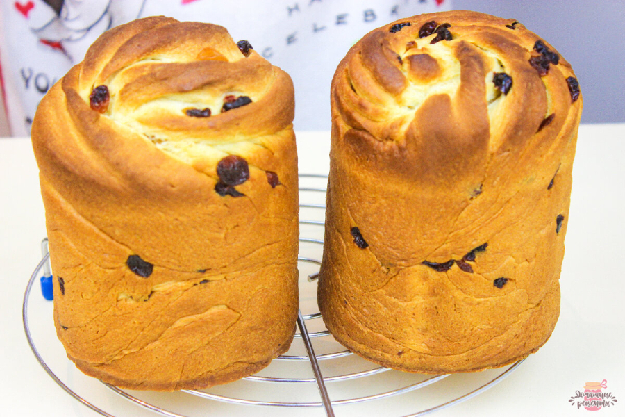Випікати в заздалегідь розігрітій духовці до 180 градусів приблизно 40-50 хвилин. Перевіряємо готовність паски дерев’яною шпажкою, при готовності вона буде сухою та чистою. Гарячі паски дістаємо з форми, остуджуємо на решітці.