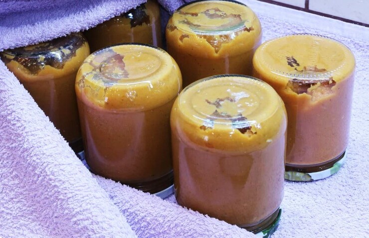 - Поки тушкується кабачкова ікра з баклажанами, стерилізуємо банки з кришками будь-яким зручним для вас способом.
