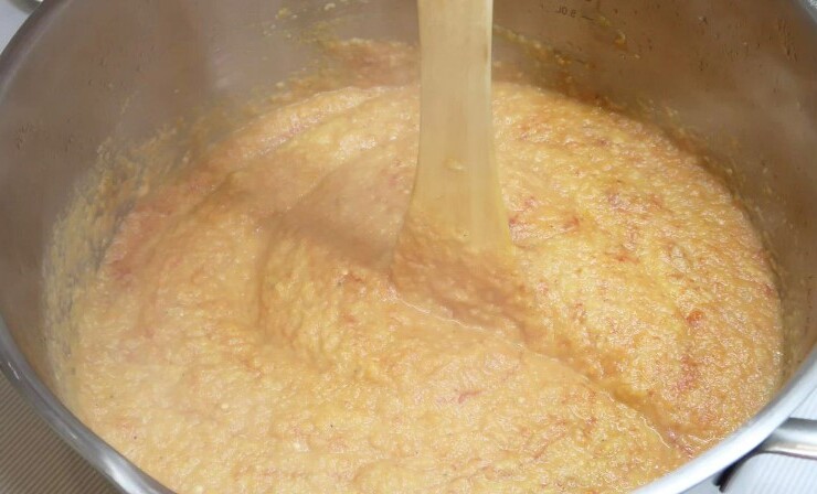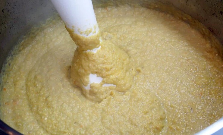 - Потім подрібнюємо овочеву суміш до однорідної консистенції за допомогою занурювального блендера.