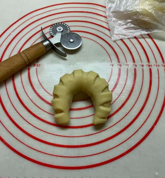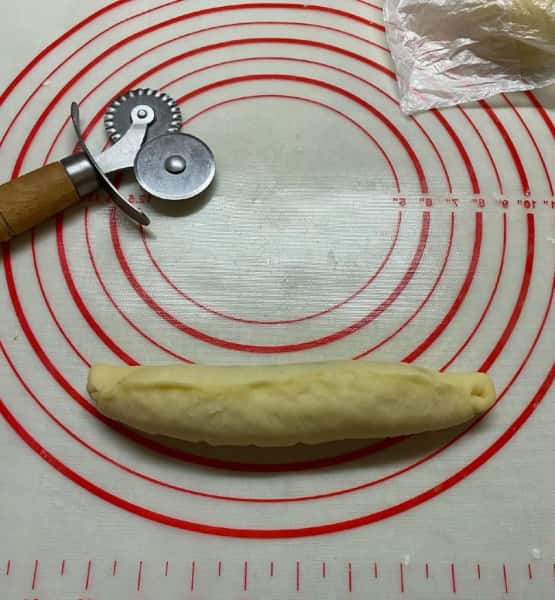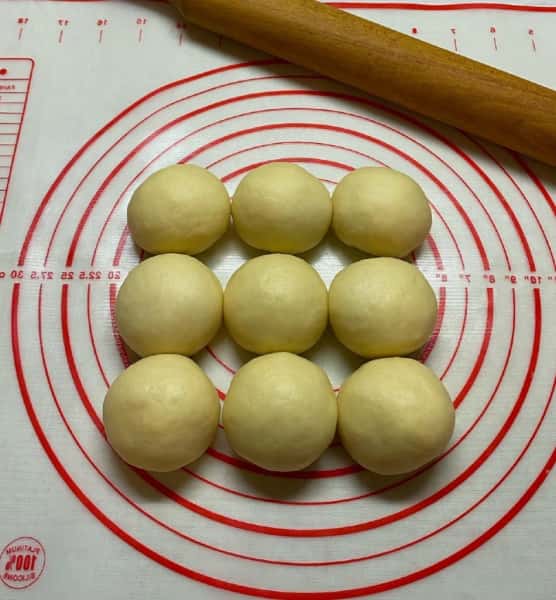 - Готове тісто розділити на 9 рівних частин.
