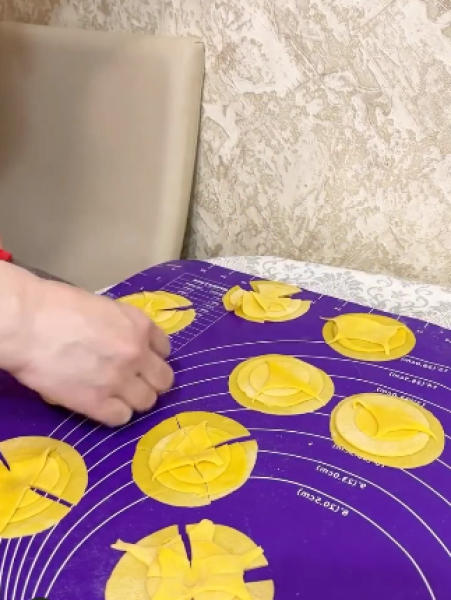 Скріплюємо, надрізаємо на 4-5 частин.