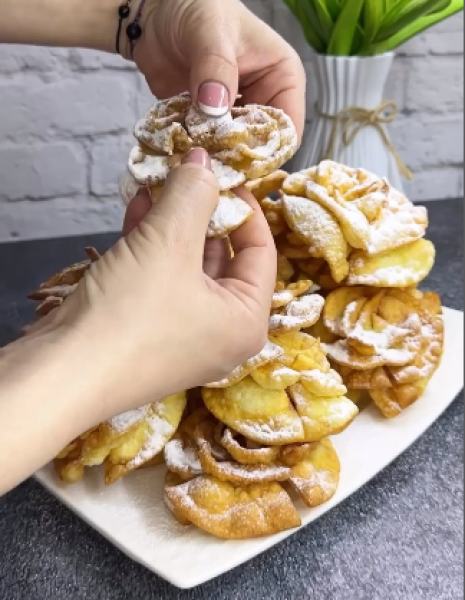 За цим рецептом він виходить хрустким та дуже ніжним 👍 Улюблена випічка з дитинства! Дуже часто готували хмиз із бабусею, готували багато, по дві величезні миски, навіть скоріше тазики 😁