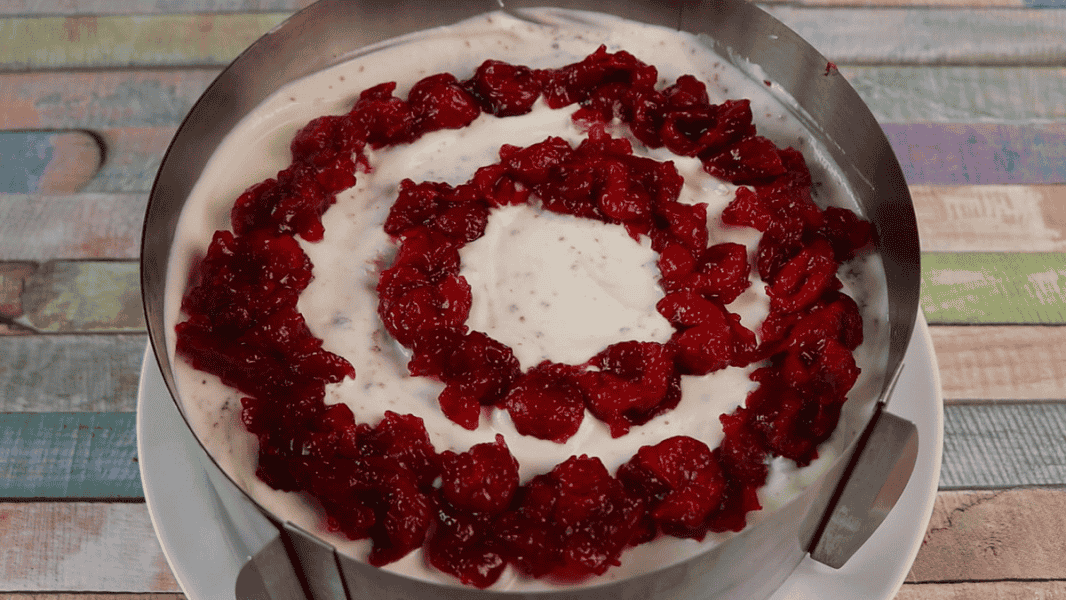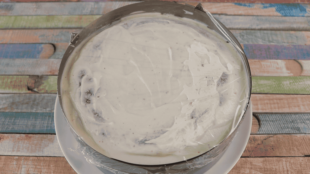 Через час видаляємо плівку і кільце, попередньо проходимо ножем з боків кільця, щоб легко його витягти.