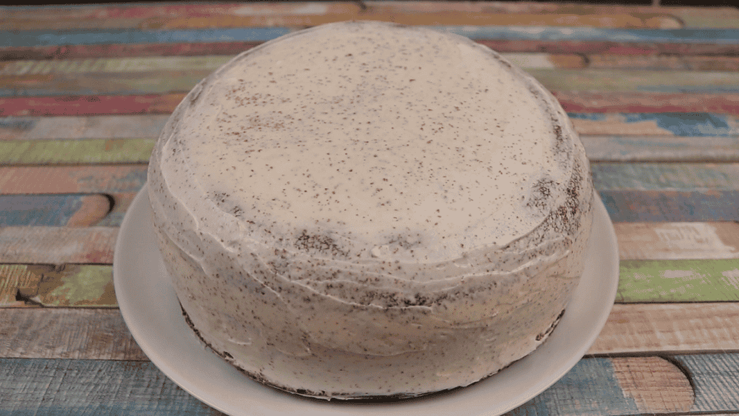 Змащуємо торт відкладеними 3 ст. л. крему.
