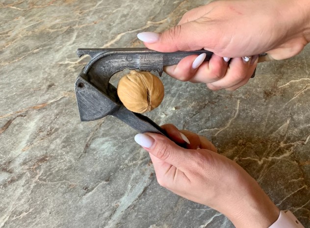 Цим інструментом також тиснуть волоські горіхи. Спочатку прес так і був придуманий, в деяких моделях, навіть були продумані спеціальні насадки, які зручно охоплюють горіх і тиснуть його.