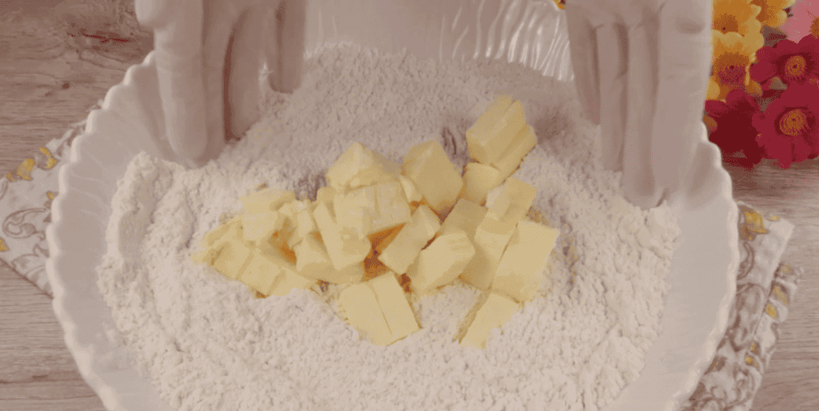 Додаю холодне вершкове масло, я його порізала на шматочки.