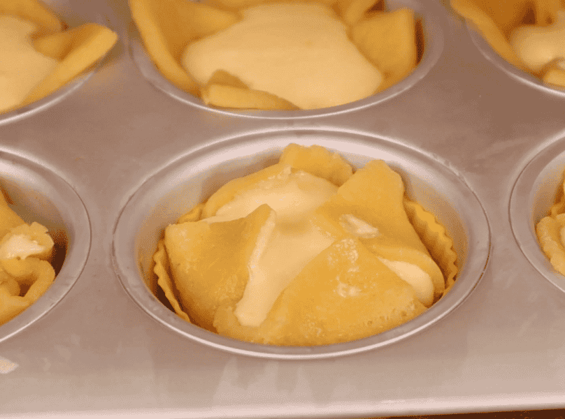 - Кожен квадратик розподіляємо в силіконовій формі, щоб вийшло дно і стінки. Краї залишаємо зовні.