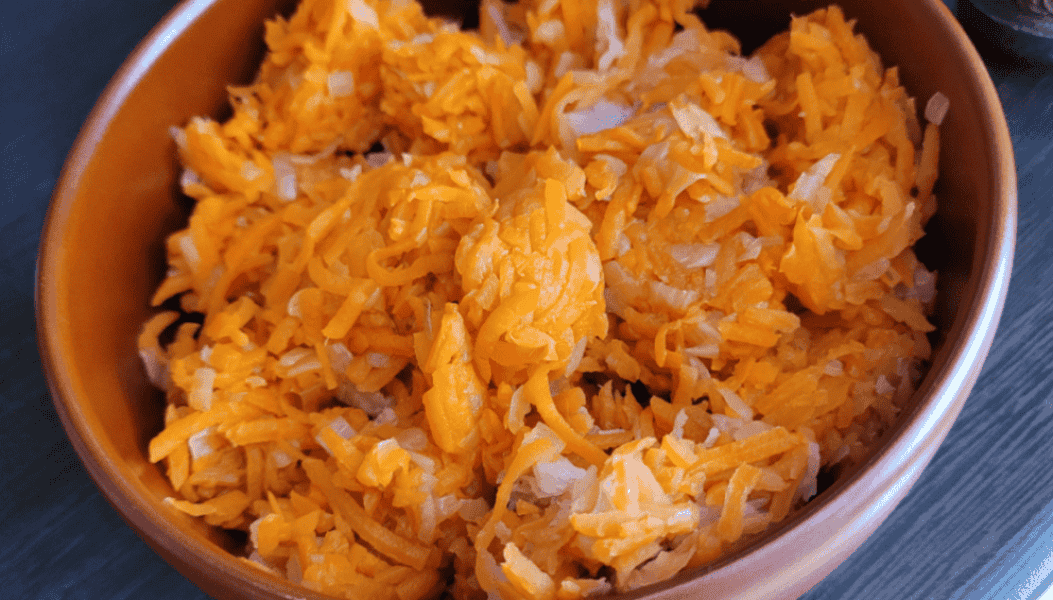 Ріпчасту цибулю нарізаю дрібними кубиками, моркву натираю на тертці, з’єдную і відставляю вбік.