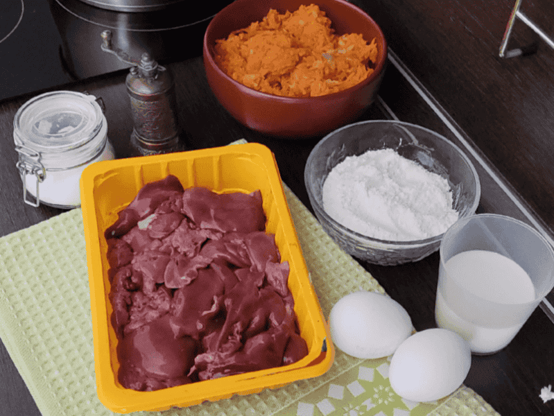 У цьому рецепті курячу печінку можна відразу пропустити через м’ясорубку разом із цибулею та морквою.