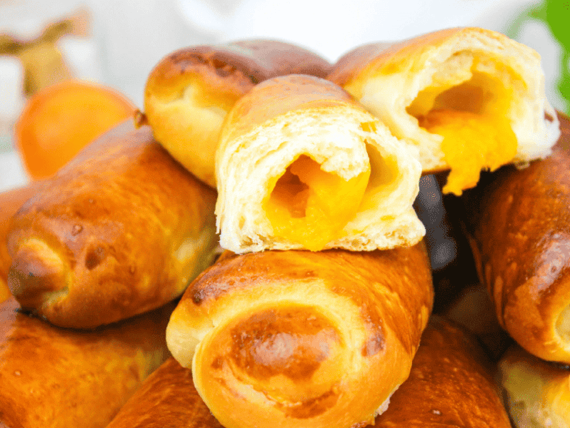 Ніхто не відмовиться від таких рум’яних м’яких повітряних булочок з абрикосами, начинку при бажанні можна замінити на будь-які ягоди і фрукти.
