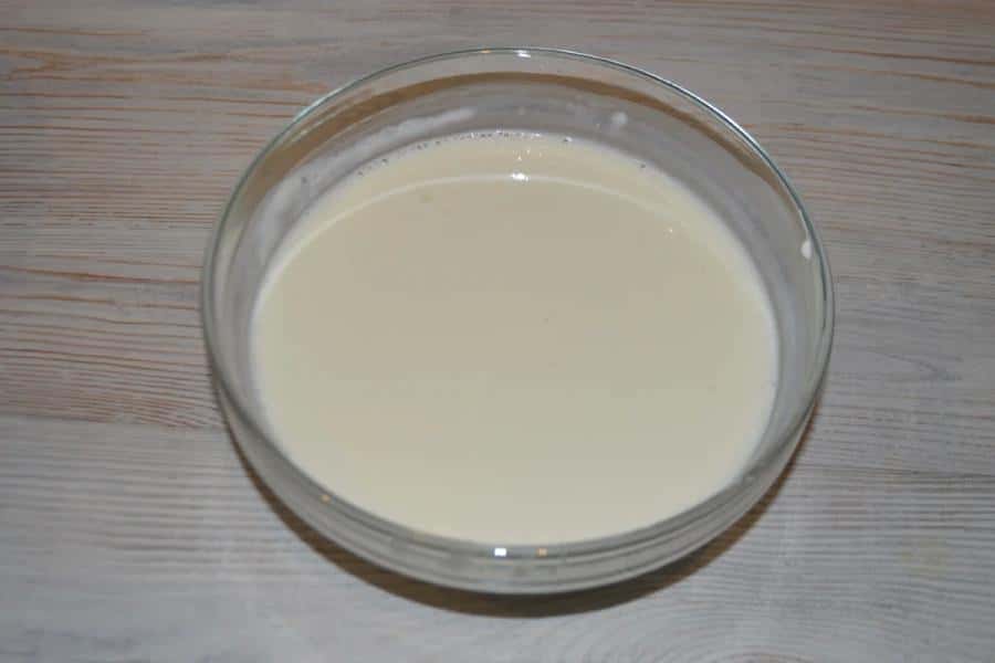 - У сметану додамо цукор, перемішаємо та залишимо на 10 хвилин. Желатин залиємо гарячою водою, перемішаємо до повного розчинення. Охолоджений желатин вливаємо в сметанний крем постійно помішуючи.