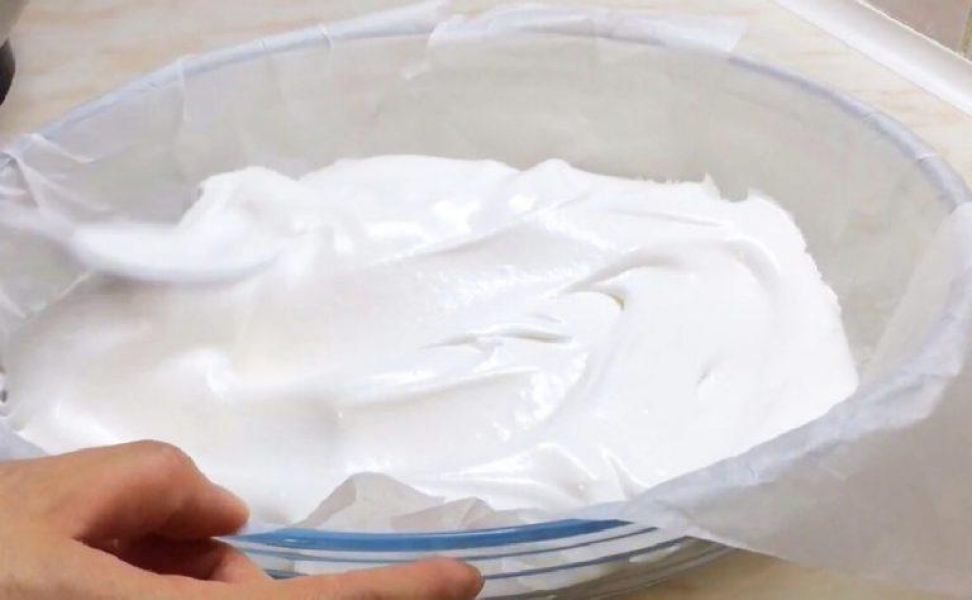 Накрийте маршмеллоу плівкою, змащеною олією і залиште на кілька годин при кімнатній температурі або в холодильнику для застигання.