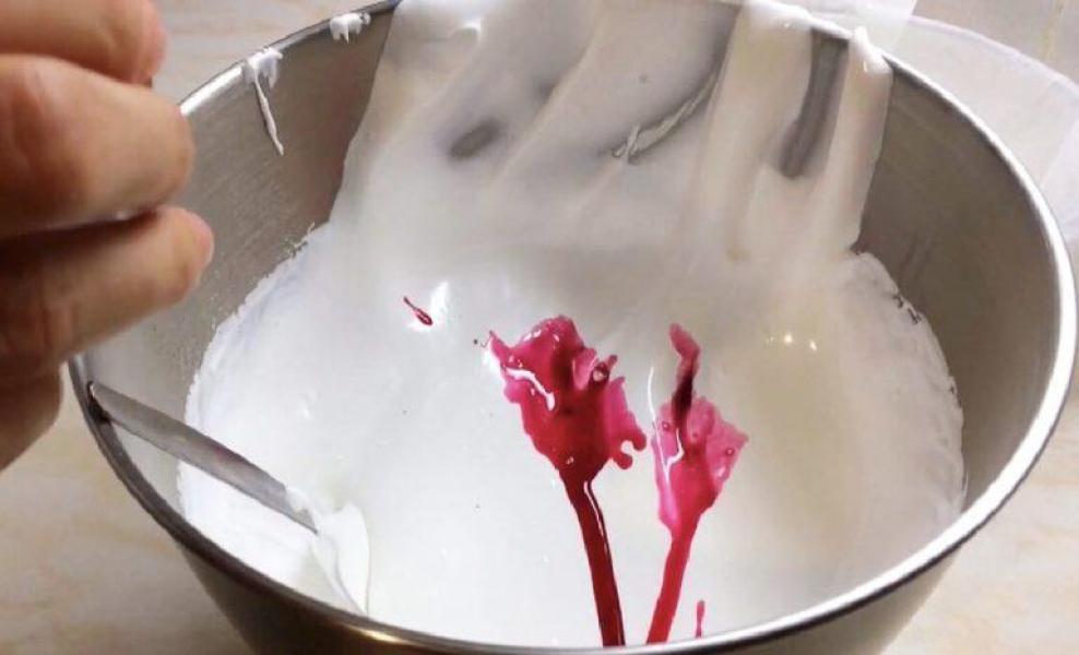Продовжуйте збивати, доки маса не стане світлою та пишною. За бажанням, додайте ванілін та лимонну кислоту. Якщо хочете забарвити маршмеллоу, додайте барвник у половину маси на цьому етапі.