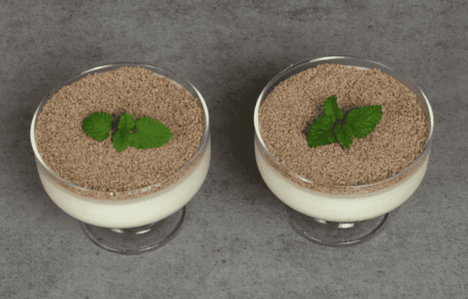 Перед подачею на стіл посипаю натертим шоколадом і прикрашаю гілочкою м’яти.