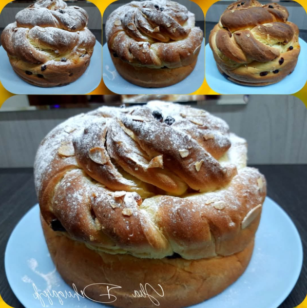 У теплій воді розвести дріжджі. Цукор, дрібку солі змішати з цедрою апельсини. До яйця додати цукор з цедрою, потім додати апельсиновий сік і розведені дріжджі. Поступово додати просіяне борошно і в кінці олію. Вимішувати приблизно 15 хв руками. Готове тісто викласти у ємкість злегка змащеною олією і залишити на 1.5 год. Тісто повинне збільшитися удвічі.