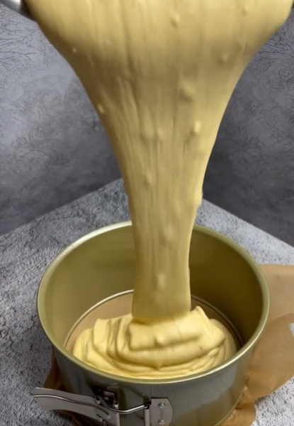 Перекладаємо масу у форму. Боки форми нічим не змащуємо.