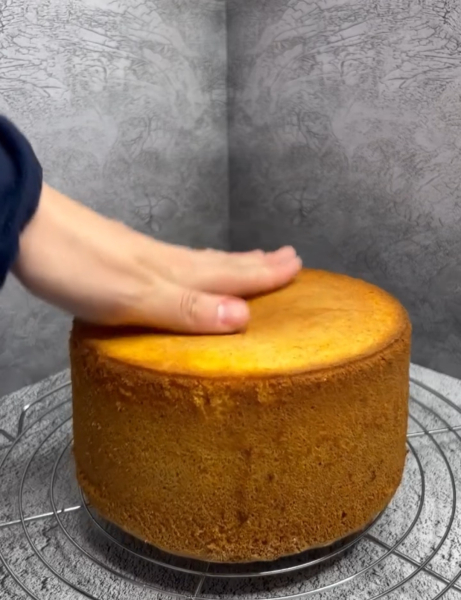 Готовий бісквіт виймаємо з духовки, залишаємо у формі хвилин на 15 і потім виймаємо з форми. Охолоджуємо повністю при кімнатній температурі перевернувши на решітку.