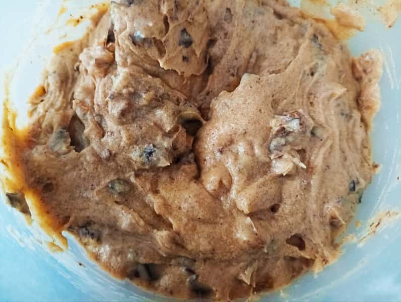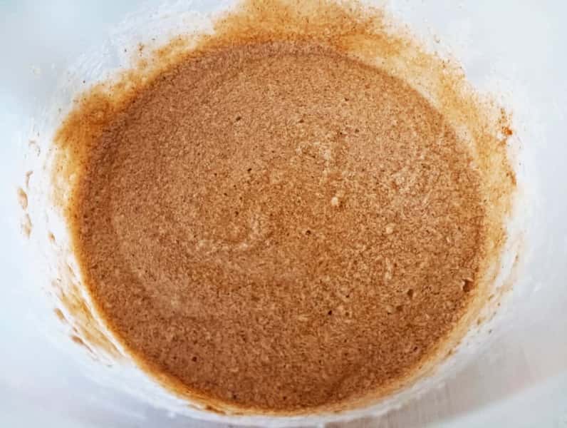 Всипаю до суміші прянощі і перемішую на низькій швидкості. Тут відбувається перше диво. Суміш забарвлюється в світло-кавовий колір, як ніби додали какао. Аромат просто непередаваний.