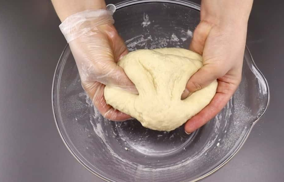 Тісто досить швидко збирається в єдину грудку, але продовжуємо вимішувати протягом 5 хвилин до гладкості та еластичності. Тісто не повинно прилипати до рук і має бути дуже м’яким.