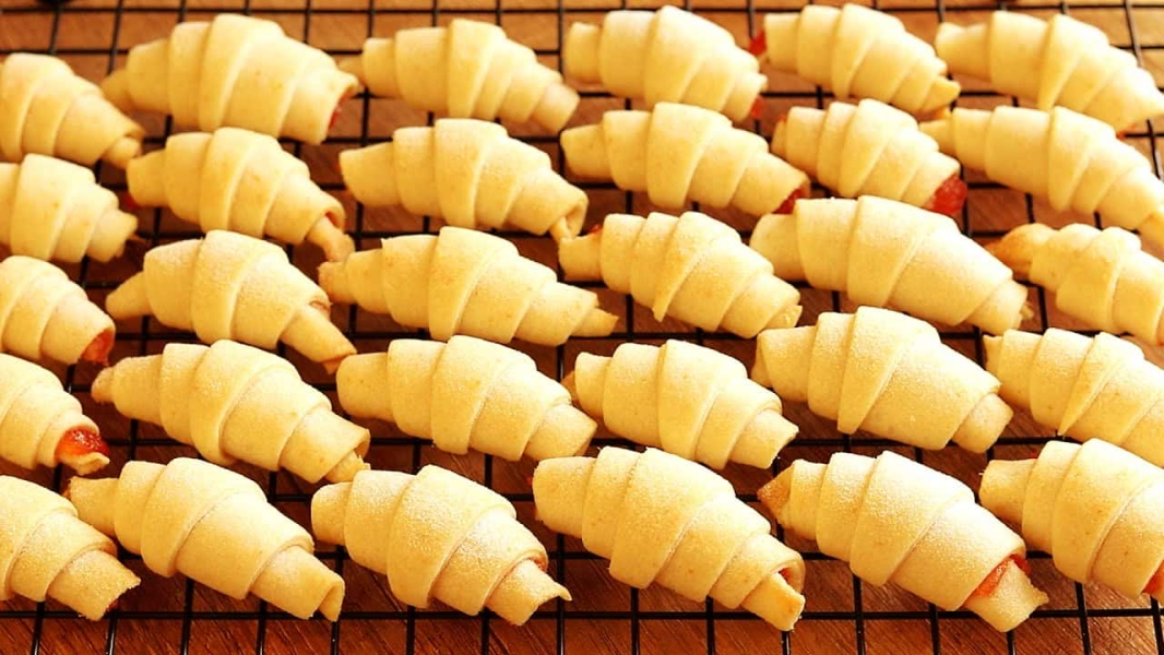 Викласти рогалики на деко застелене пергаментом.
