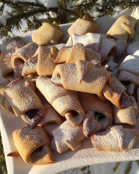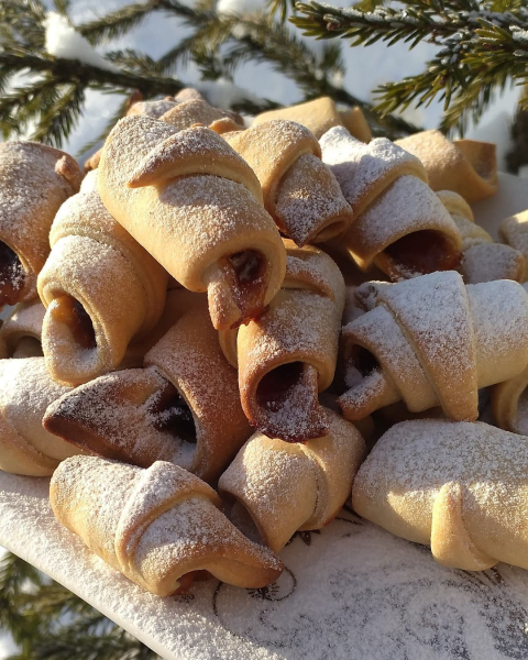 - 👉Готові рогалики щедро посипати цукровою пудрою. СМАЧНОГО!