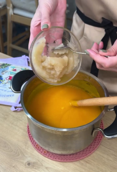 ▫️Вводимо агар у пюре, змішуємо, проварюємо 4 хвилини.