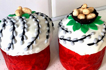 Заливаємо вершками і ставимо в розігріту до 200 градусів духовку. Випікаємо 30 хвилин.