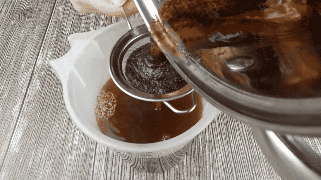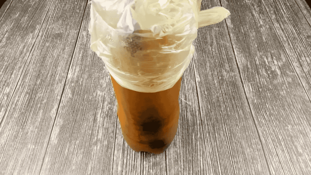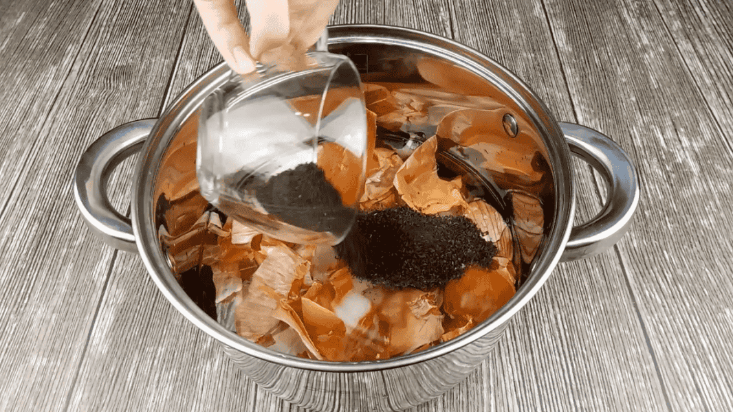 У пляшку наливаємо 1 л води, додаємо лушпиння з 4-х великих цибулин, всипаємо 3 ст. л. солі і 1,5 ст. л цукру. Останнім всипаємо секретний інгредієнт це 2 ст. л. самої звичайної сухої заварки чаю. Чай беремо чорний без добавок. Перемішуємо.