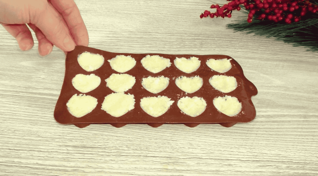 5. Щільно розкладаємо кокосову масу по формам.