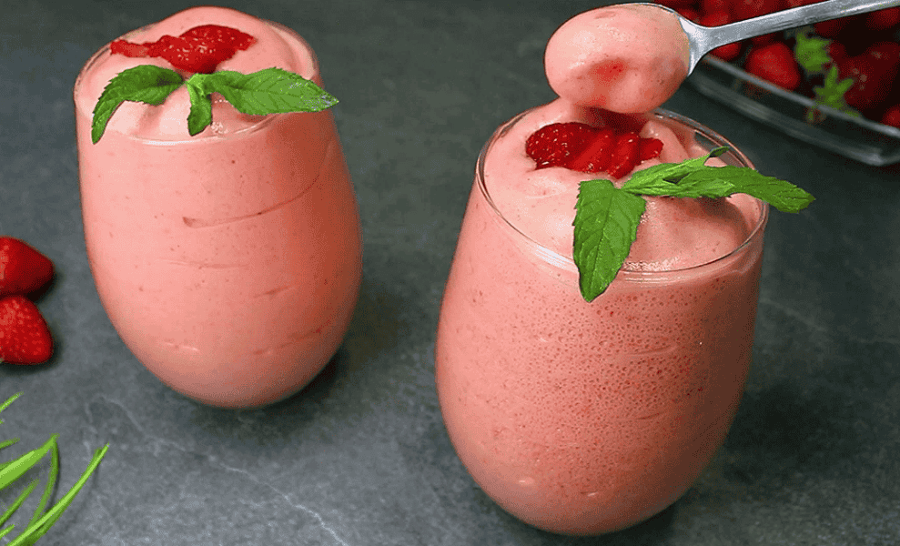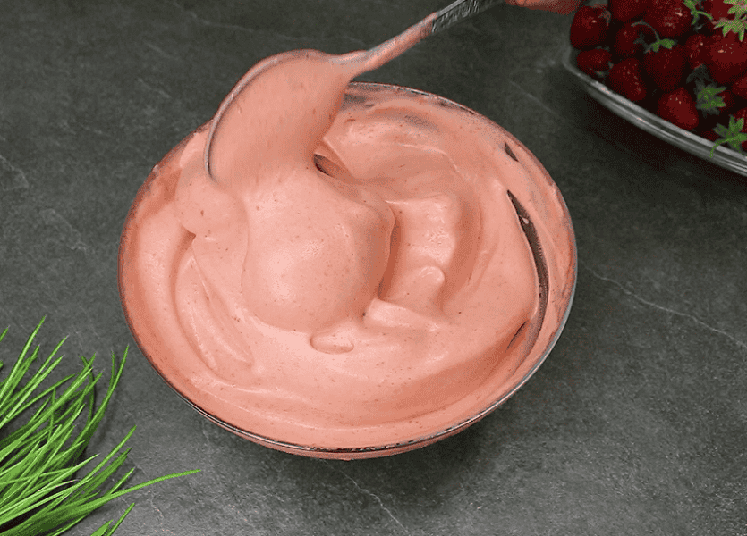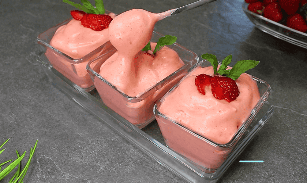 Пропоную цікавий десерт із полуницею, який робиться всього із трьох простих інгредієнтів. У ньому немає вершків чи сметани і готується він буквально за 5 хвилин, а виходить ніжний десерт, який складно з чимось порівнювати: дуже повітряний, легкий, з приємною текстурою та яскраво вираженим полуничним смаком.