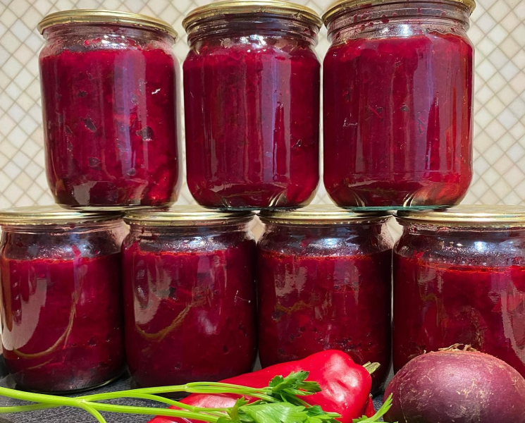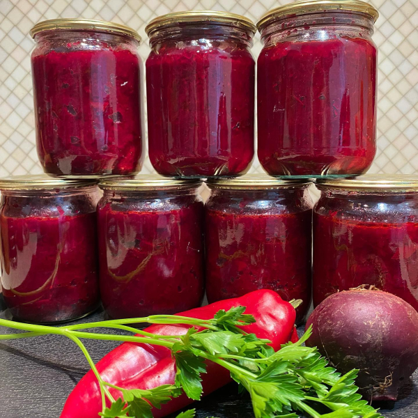 🔹Бурячкову ікру гарячою розкладаємо в стерилізовані банки і закручуємо стерильними кришками, укутуємо до охолодження.