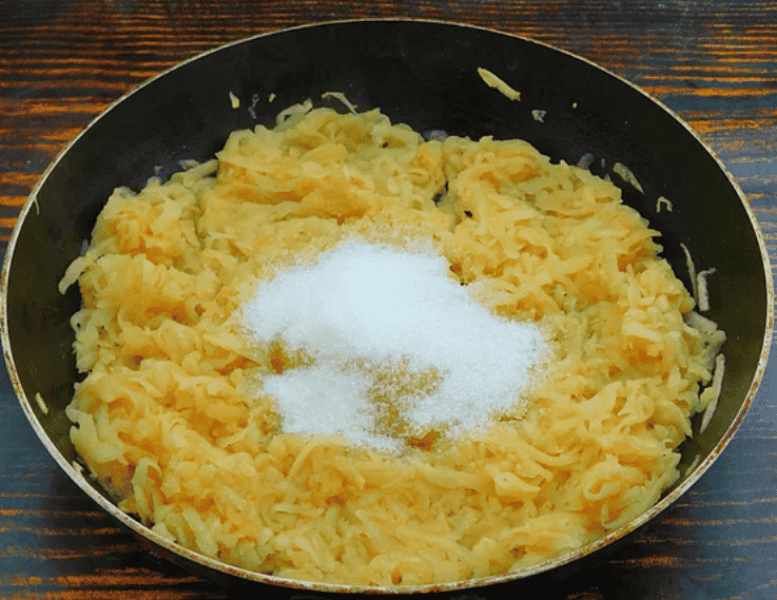 Для начинки яблука очистити та натерти на буряковій тертці. Викласти в сковороду разом із вершковим маслом.